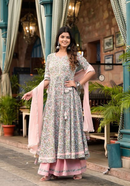 Orange Organza Gown Set allows you to express your timeless beauty. It is noted for its elegant and sophisticated appearance, which is achieved using the finest fancy organza fabric along with flower print work . Its easy-to-wear design makes it appropriate for any occasion. This traditional and elegant ornament will elevate your look.