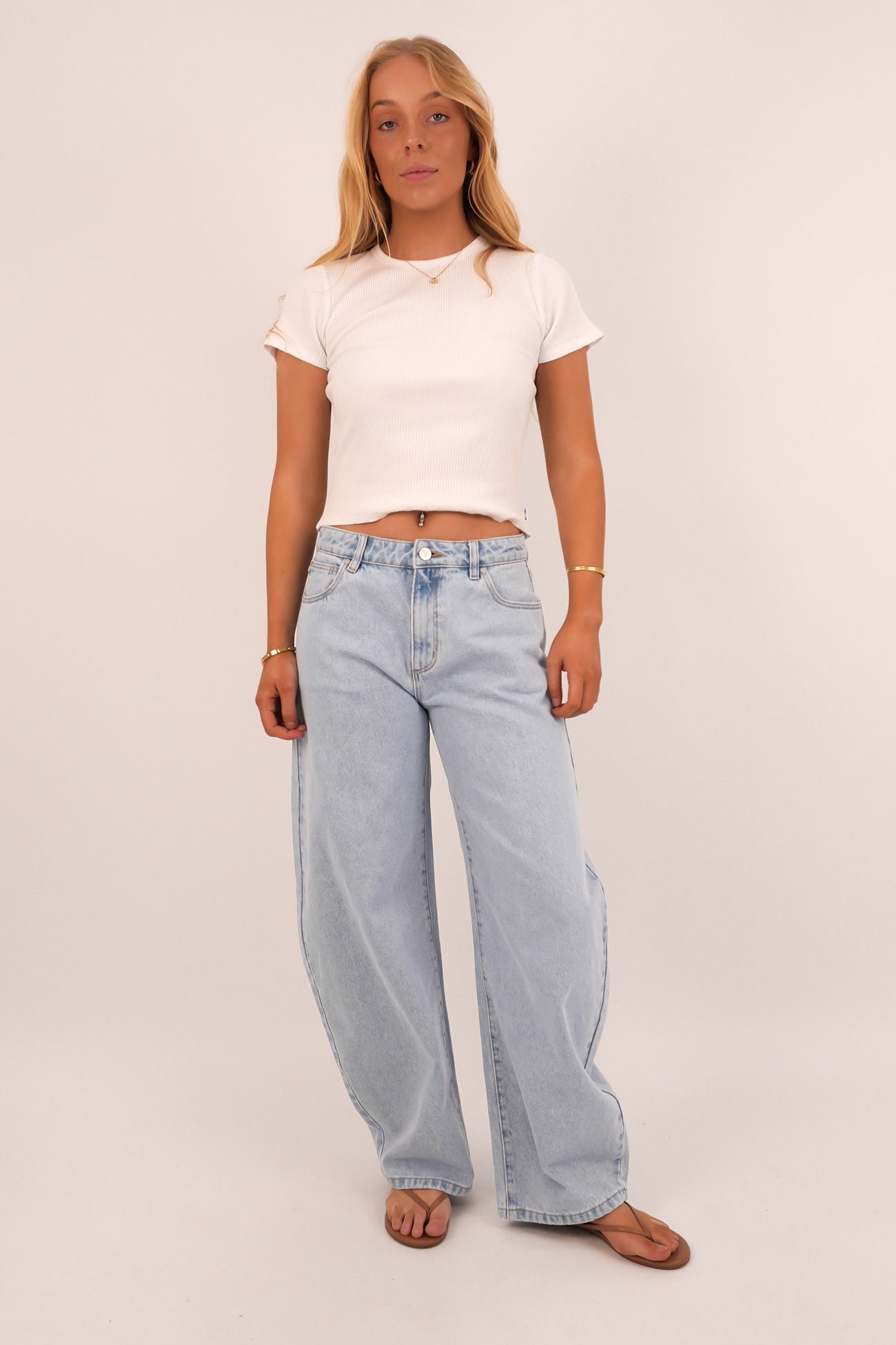 The Jean in Kendall is a mid rise, barrel style jean.