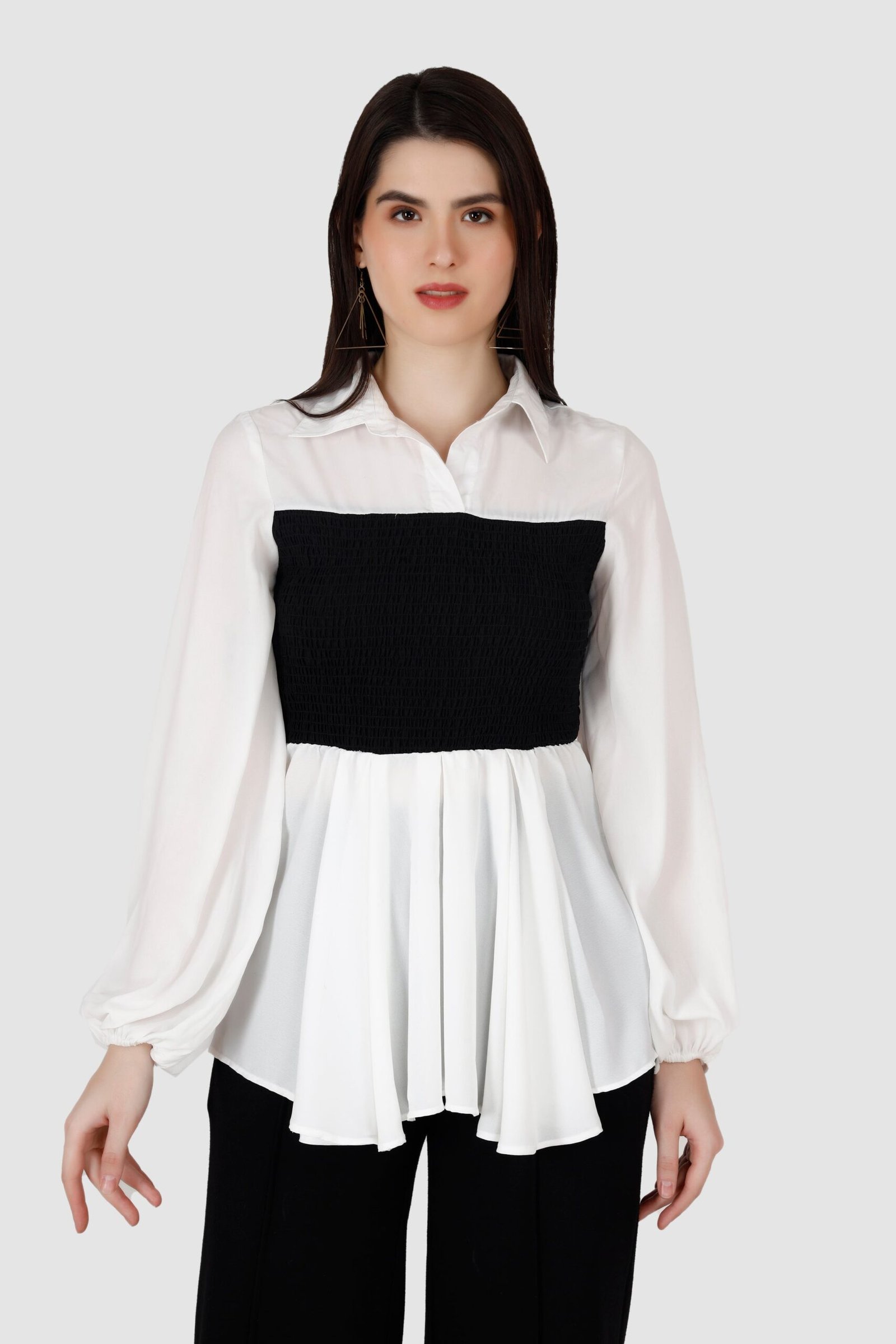 Black and White Dual Tone Shirt Style Top
