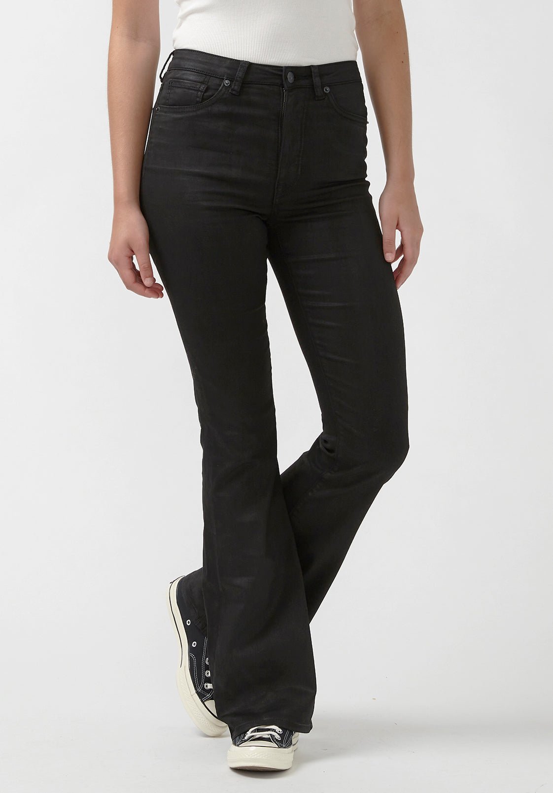 Black Coated High-Rise Flare Denim