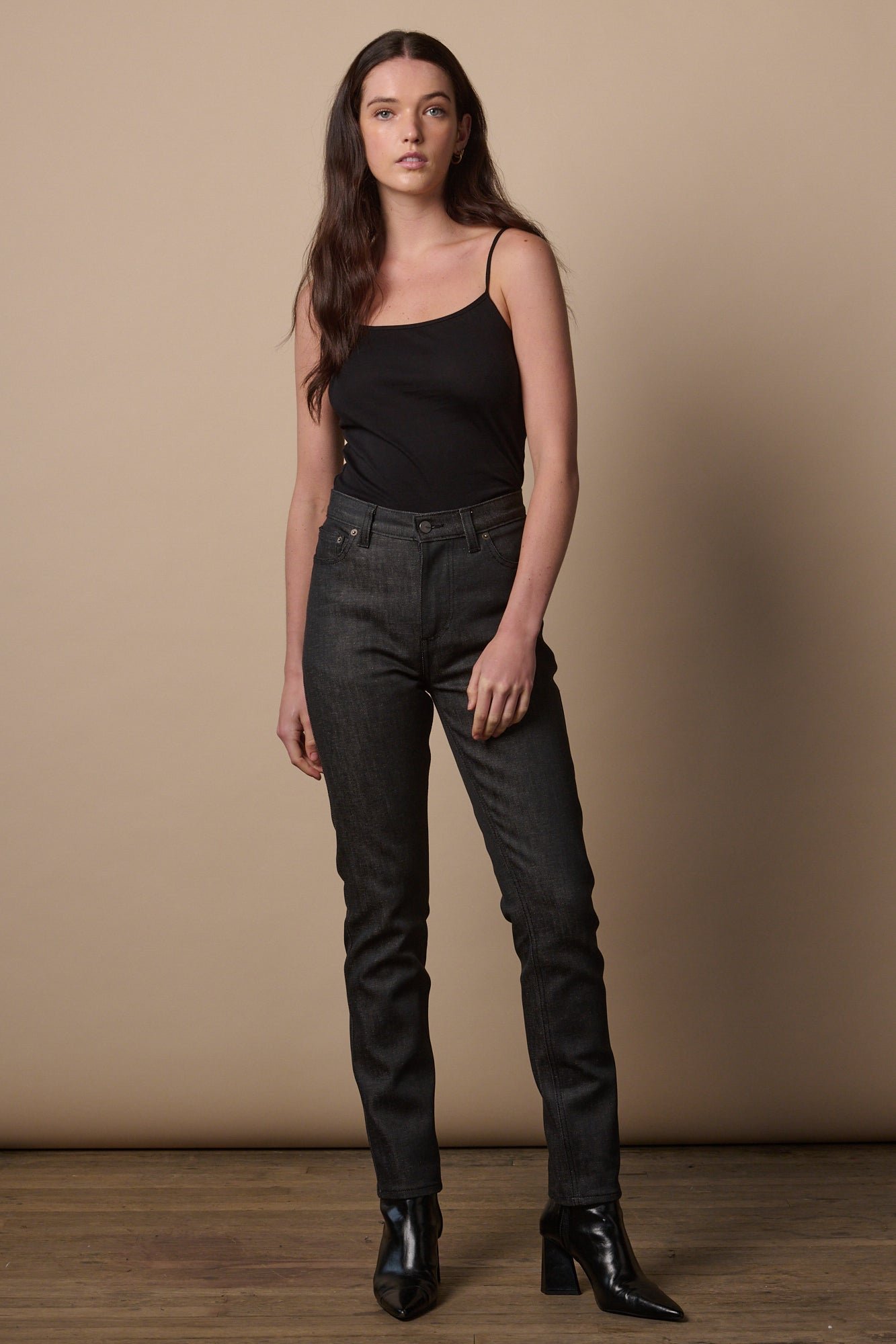 Black High-Rise Straight Fit Denim