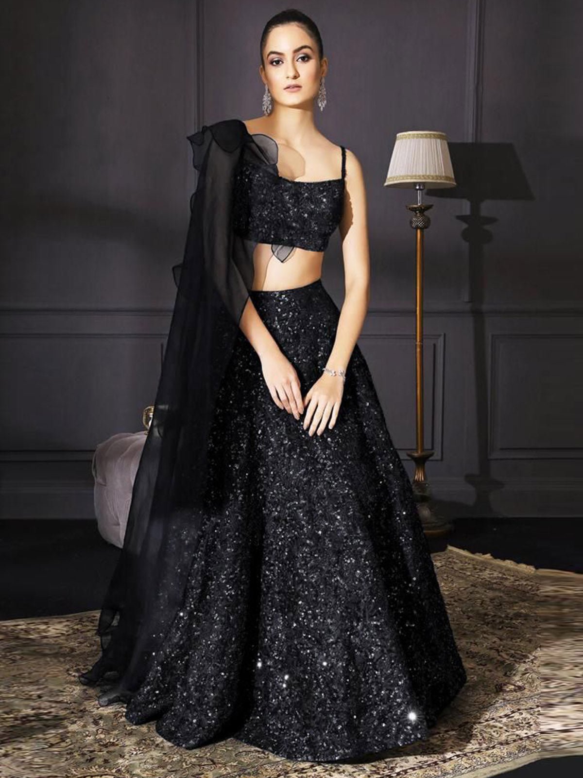 Home Lehenga set Black Sequins Semi Stitched Lehenga Choli