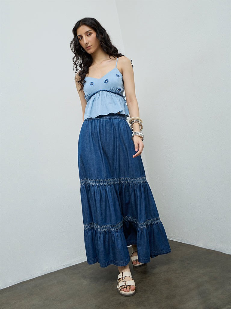 Be the first to review “Blue Tiered Denim Skirt” Cancel reply
