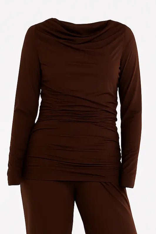 Brown and Pink Neck Frill Detail Stylish Top