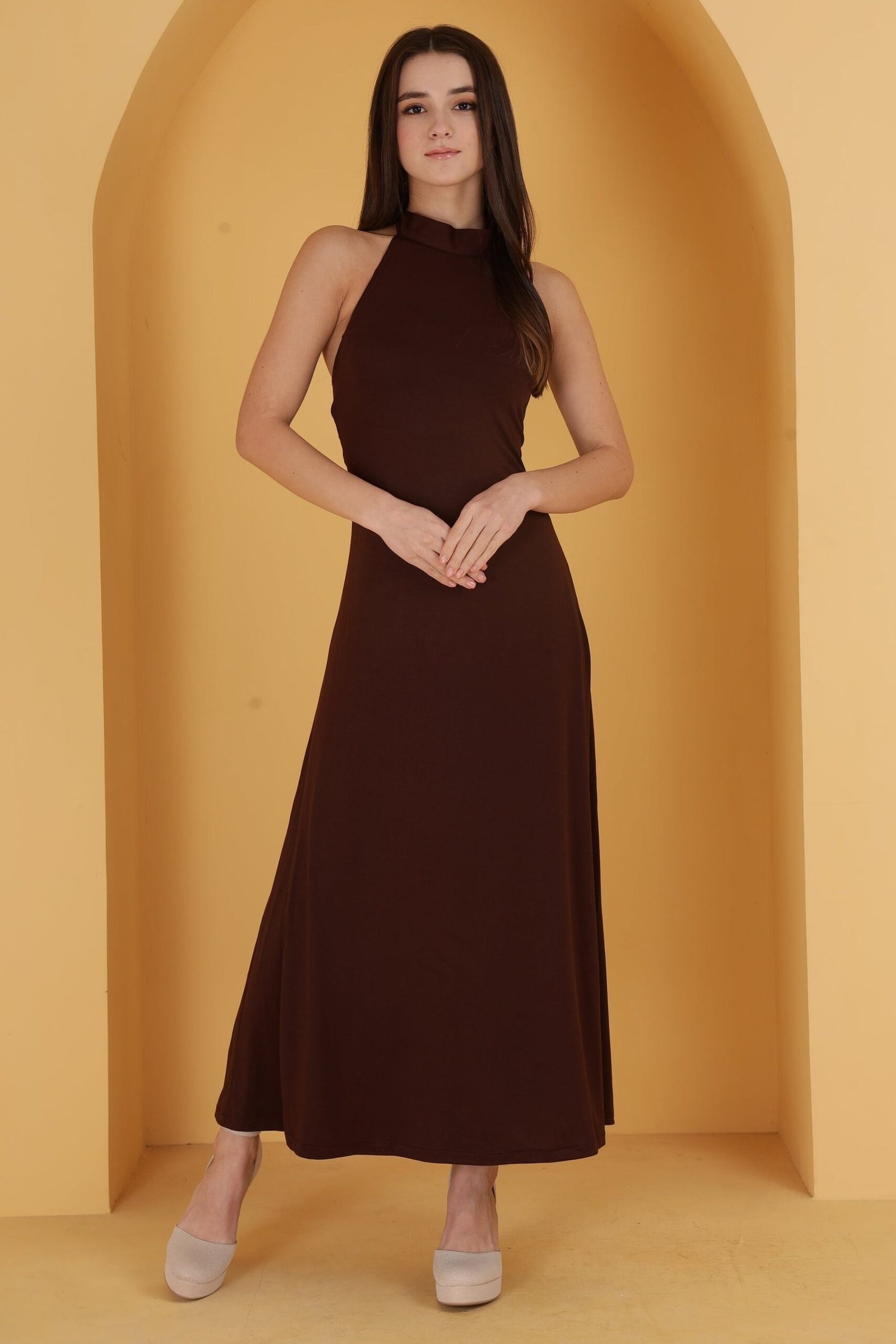 Brown Neck Cutout Bodycon Dress