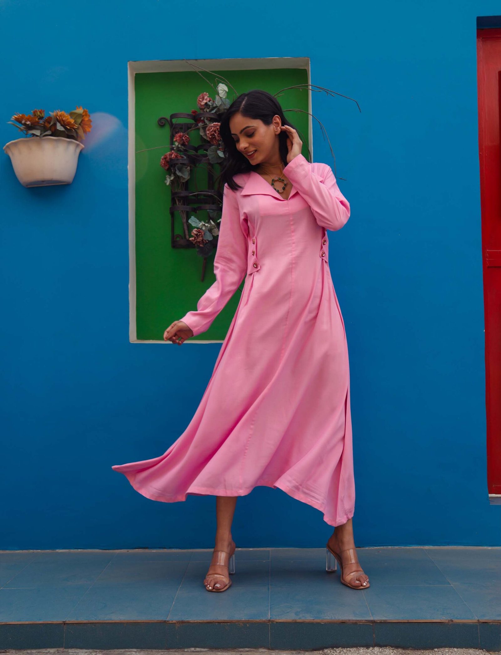 Color: Pink ?Material: Rayon ?Length: Midi Length ?No. of pieces: 1 ?