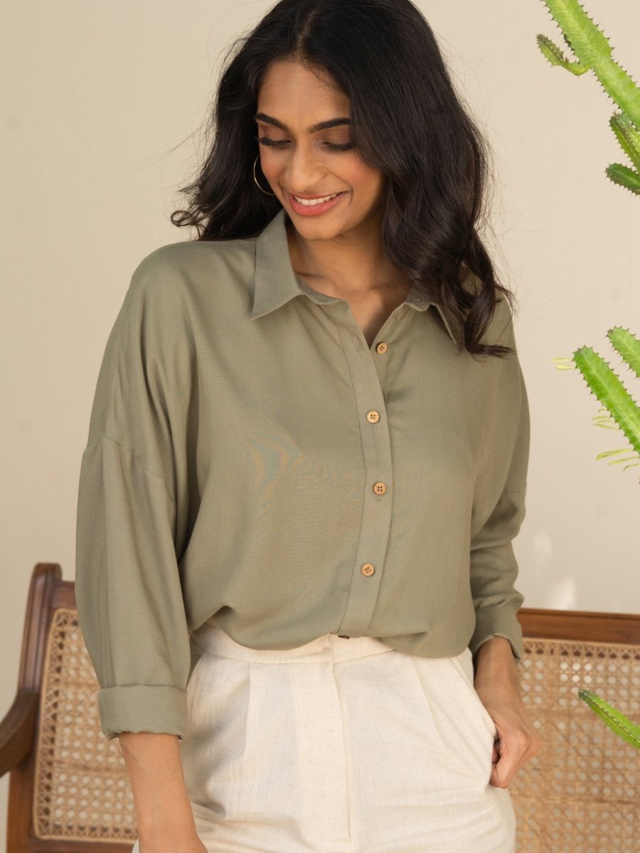 Introducing our stylish Emery Shirt – crafted in a soft, flowy rayon fabric that is perfect for any occasion. These shirts feature a relaxed fit with drop shoulders that offer a comfortable and flattering silhouette for both men and women. The wooden button detailing adds a touch of elegance to the overall look, making it perfect for any casual or dressy occasion. Whether you’re dressing up or keeping it casual, our Unisex Shirts are perfect for any occasion.