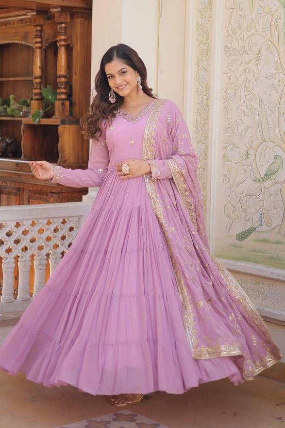 Crafted from fox georgette fabric, this gown is a refined piece in classic design. From formal functions to relaxed outings, it exudes poise and adaptability, effortlessly enhancing your appearance. Boasting a flawless design, it’s a guaranteed attention-grabber for any event.
