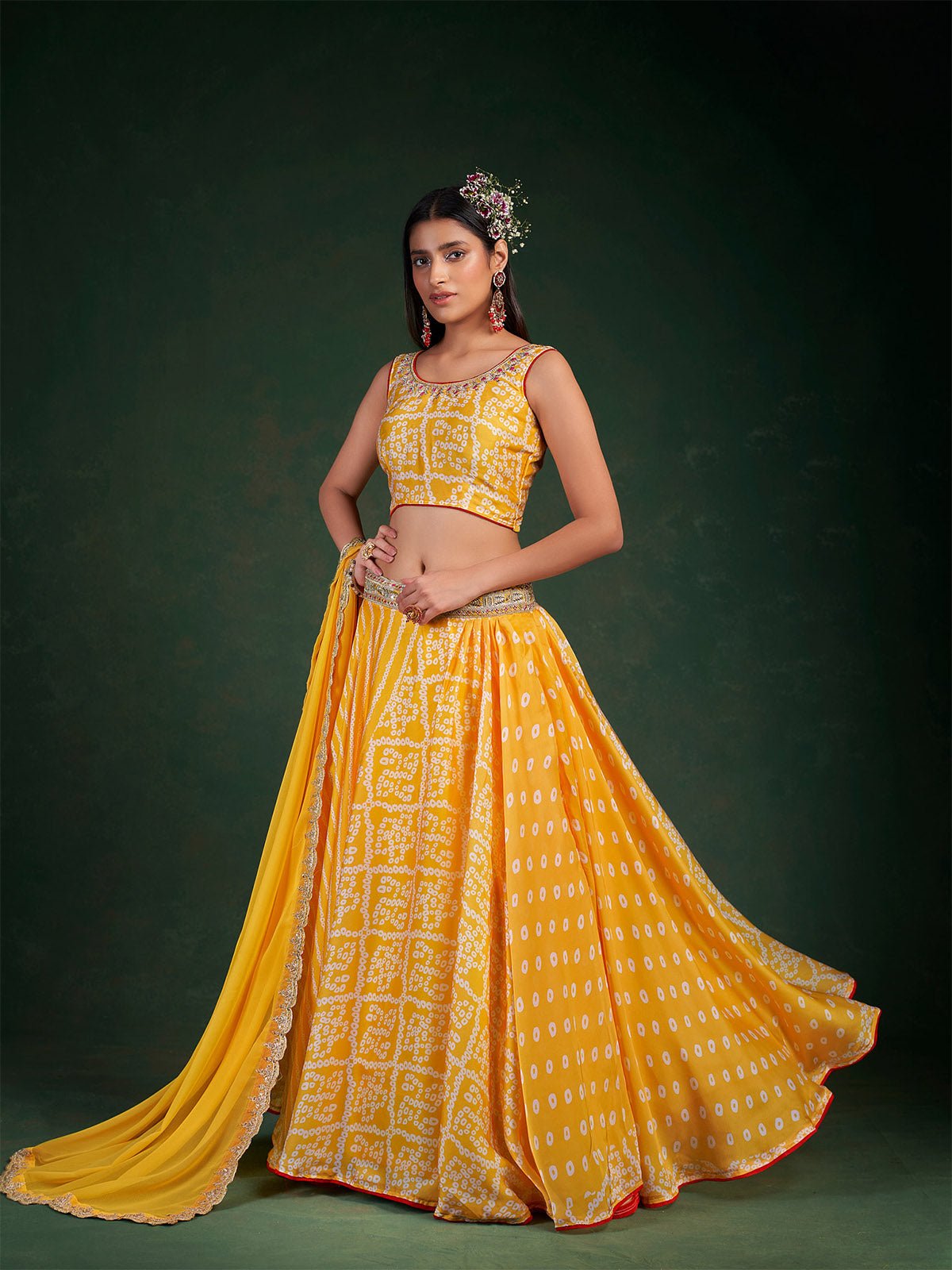 To look beautiful this wedding season, grab this lovely lehenga, blouse and dupatta set. This lehenga set is fabricated on georgette and is beautified with embroidery. The lehenga has a bridal look. Pair it With Matching Jewelry, Heels and a Big Smile For The Gorgeous Look.