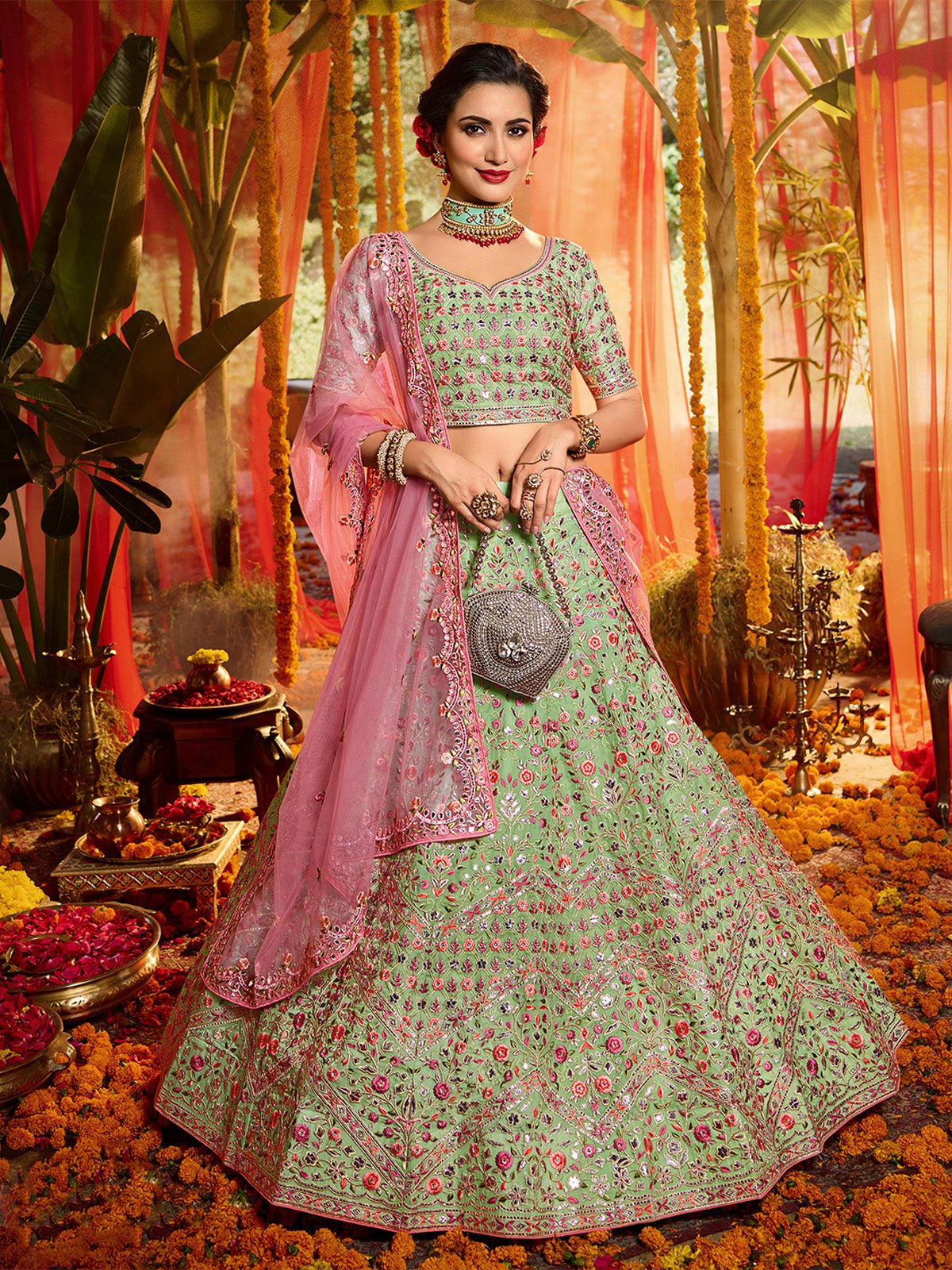 Lehenga Color : Green