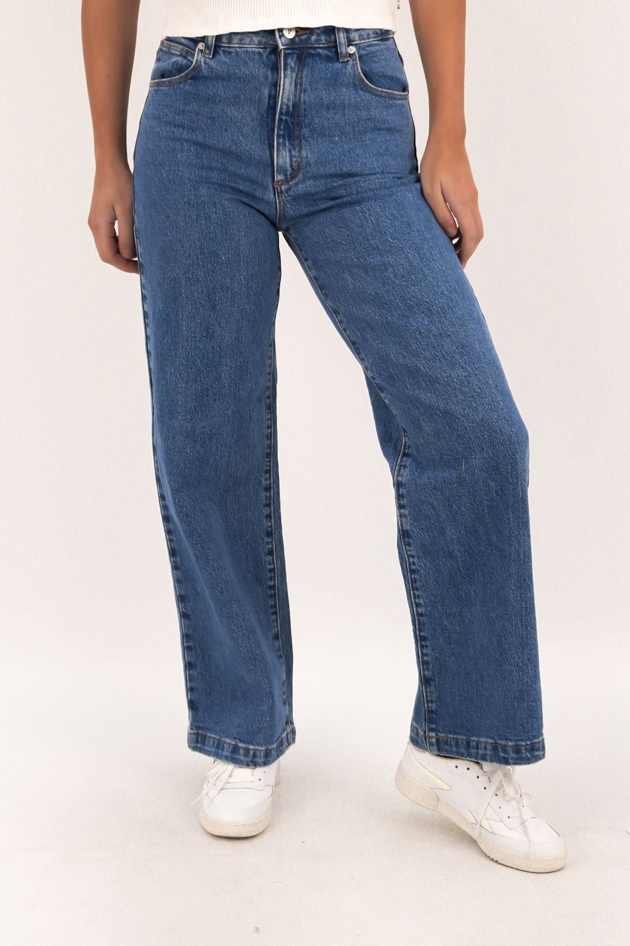 Thegh & Wide Petite in Debbie is agh rise, petite length, wide leg jean, made with a comfort denim. suggest this fits true to size and if you usually wear super-stretchy denim, try going up half a size.Details: