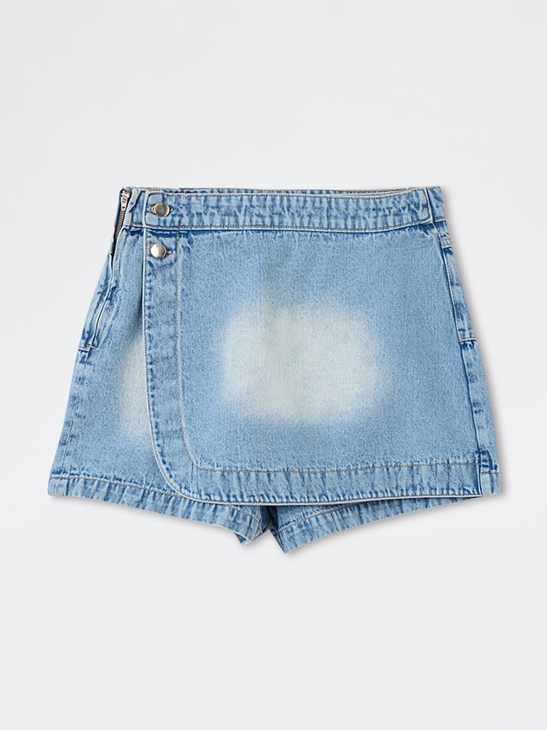 Home Skirt Light Blue Washed High-Rise Denim Skorts