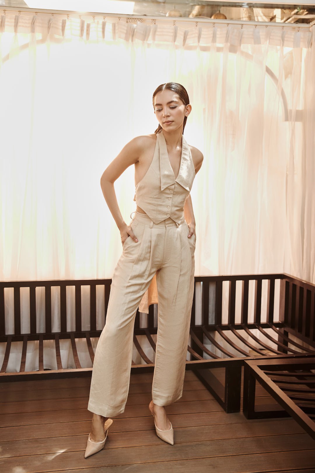 Linen Knot Vest Co Ord Set|Smart Casual Outfit