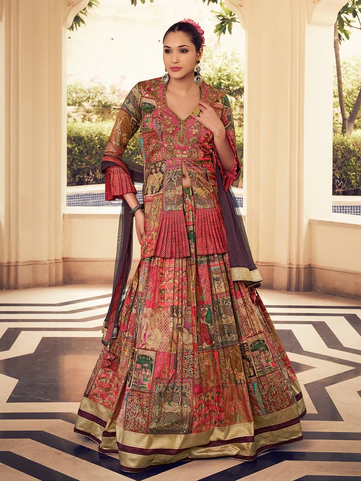 Whether you’re attending a sangeet night or a grand celebration, this Indo-Western designer gown lehenga sets you apart with its unique fusion of traditional and contemporary fashion. Pair it with statement earrings and metallic heels for a show-stopping look. Ideal for bridesmaids, fashion-forward guests, and style-conscious women, this ensemble offers elegance, trend alignment, and cultural richness in one unforgettable outfit.