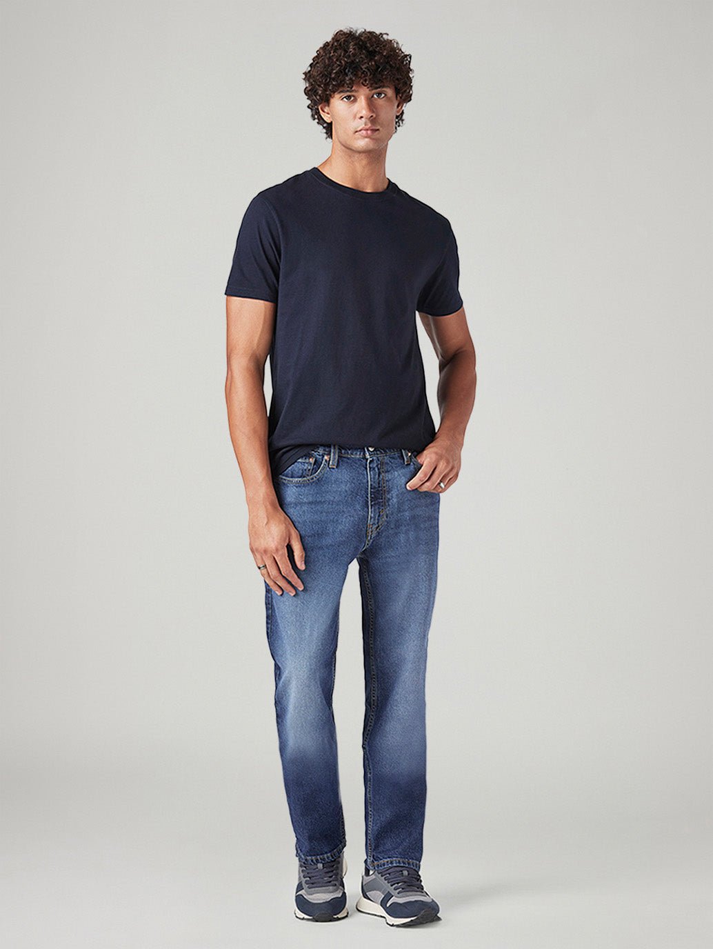 Iconic style meets everyday comfort. The ‘s Tapered Fit is relaxed through the thigh and gently narrows toward the ankle, creating a modern, streamlined silhouette. Perfectly versatile, they pair effortlessly with a t-shirt or a buttoned shirt. Crafted from cotton in blue with a medium shade, these jeans offer lasting durability, all-day comfort, and exceptional ease of movement.