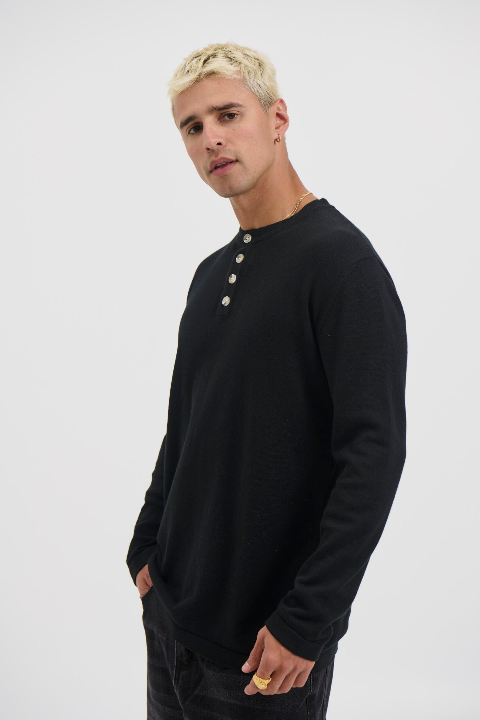 Be the first to review “Men Fitted Henley Neck Cotton T-Shirt in Black” Cancel reply