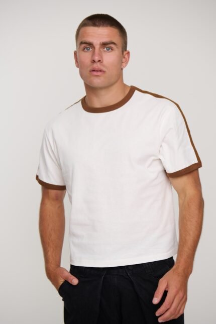 Men Ringer Style Contrast Trim Cotton T-Shirt in Brown