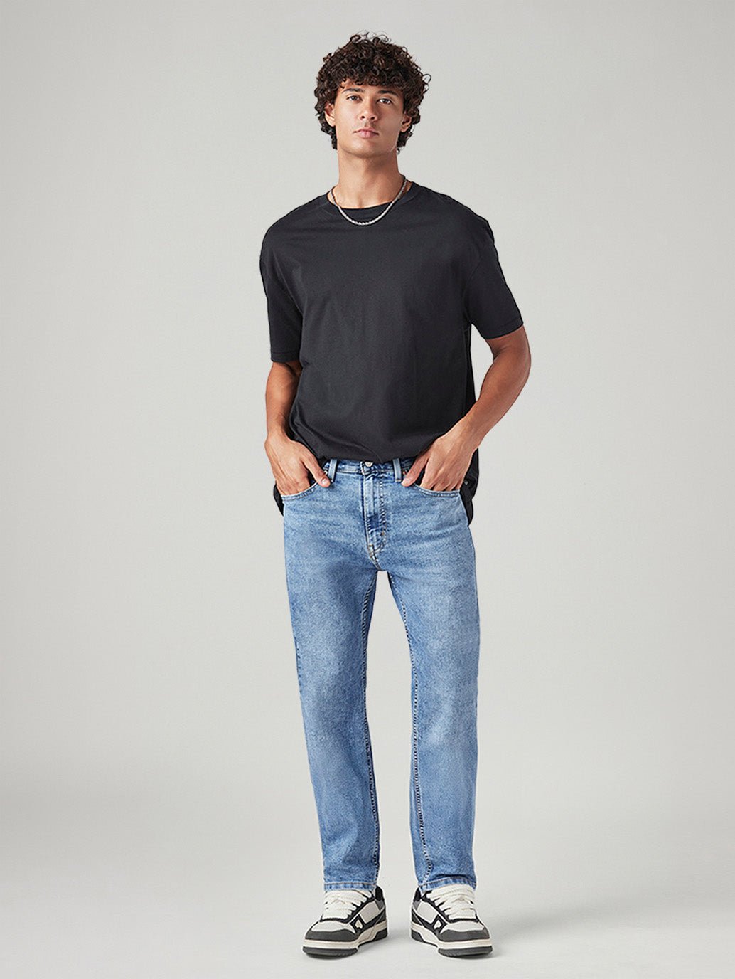 Men Light Blue Straight Fit Mid Rise Casual Denim Jeans