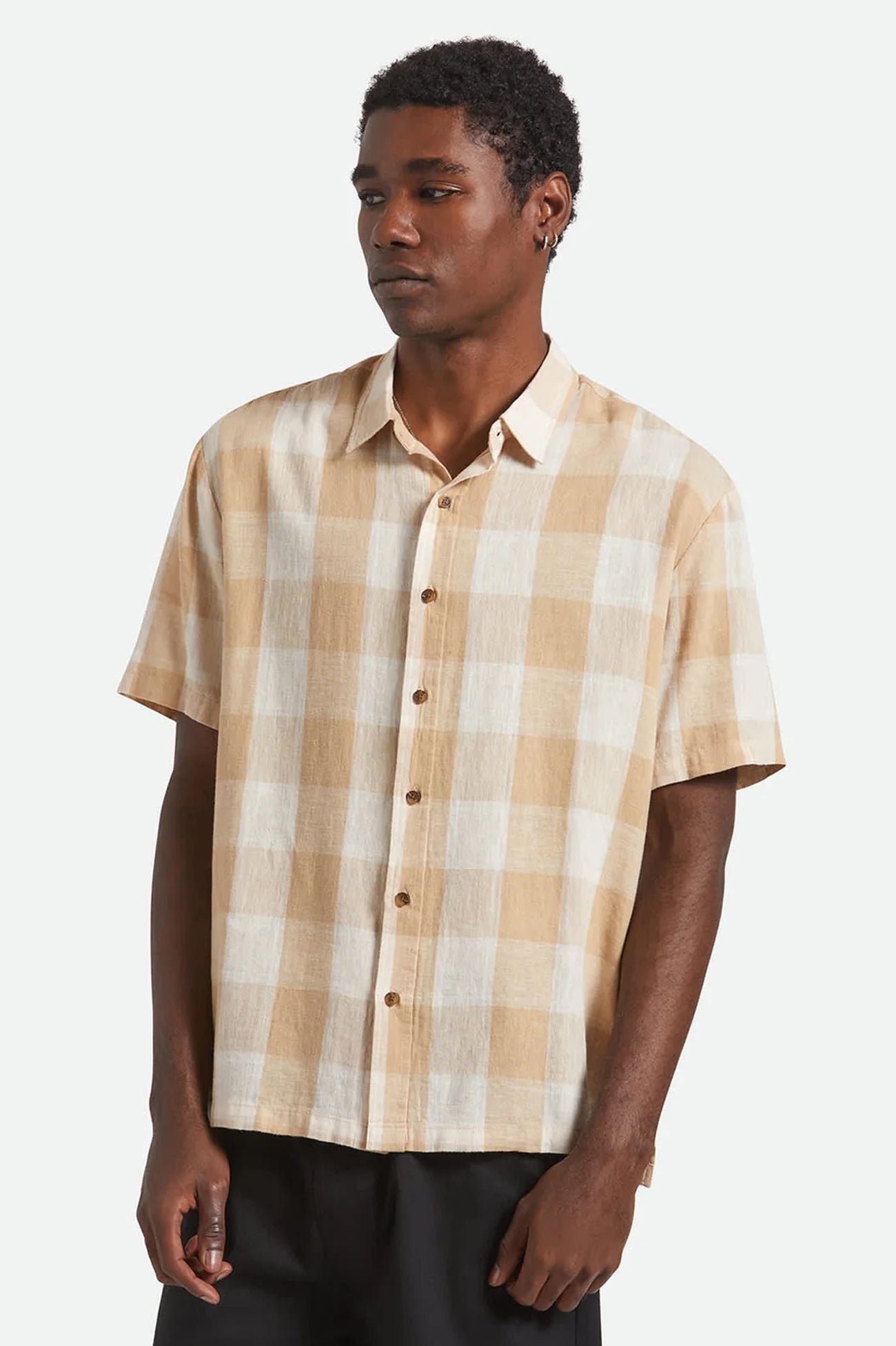 We?re bringing back the 90s with the relaxed-fit Cru Linen Blend button-up. The lightweight linen-cotton blend and fall-colored plaid make this short-sved shirt a perfect transitional piece.