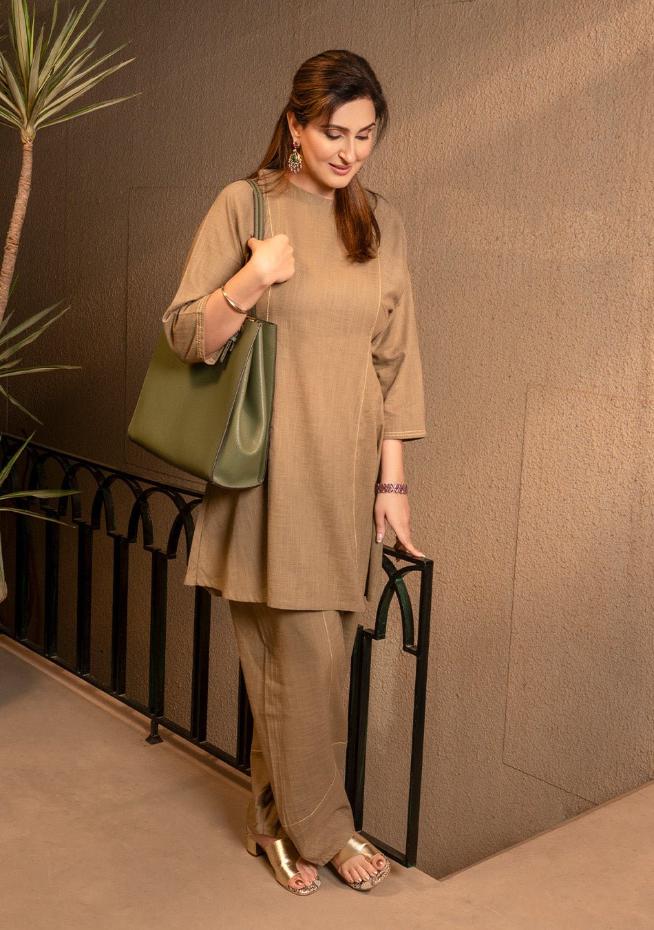 The “Mocha Luxe Co-ord Set” offers versatile wearability, suitable for various occasions. Its khaki hue exudes sophistication, blending utility with elegance. Ideal for both urban outings and casual gatherings, it ensures comfort and style, effortlessly elevating your everyday wardrobe.