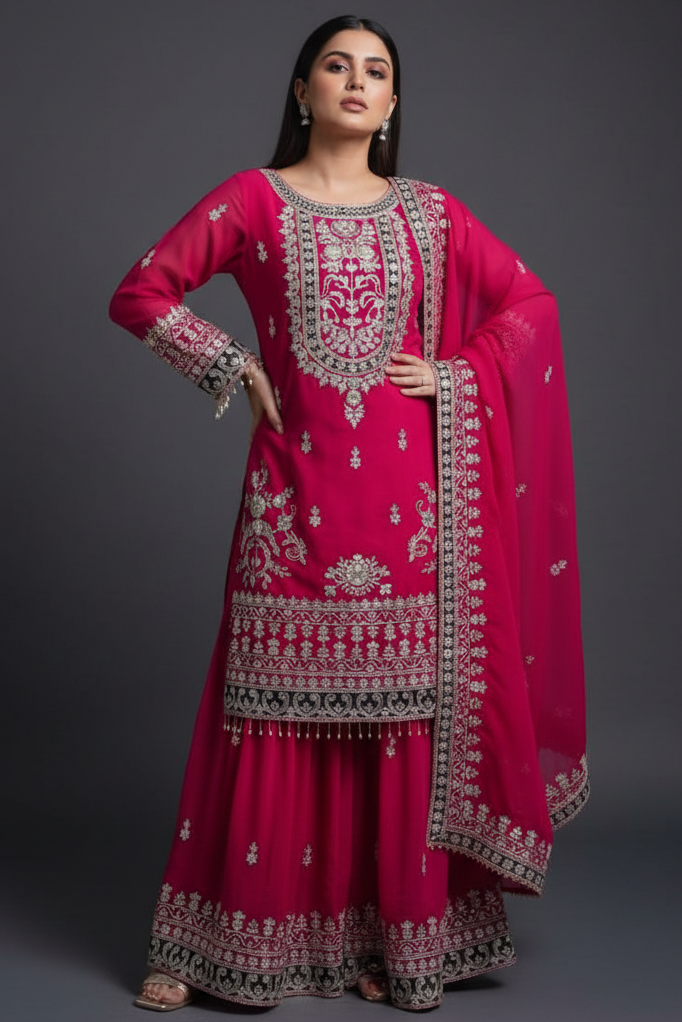 Blessings With Weaver of Dreams Partywear Georgette Kurti Set allows you to express your timeless beauty. It is noted for its elegant and sophisticated appearance, which is achieved using the finest heavy fox georgette fabric and sequins thread embroidery work?. Its easy-to-wear design makes it appropriate for any occasion. This traditional and elegant ornament will elevate your look.