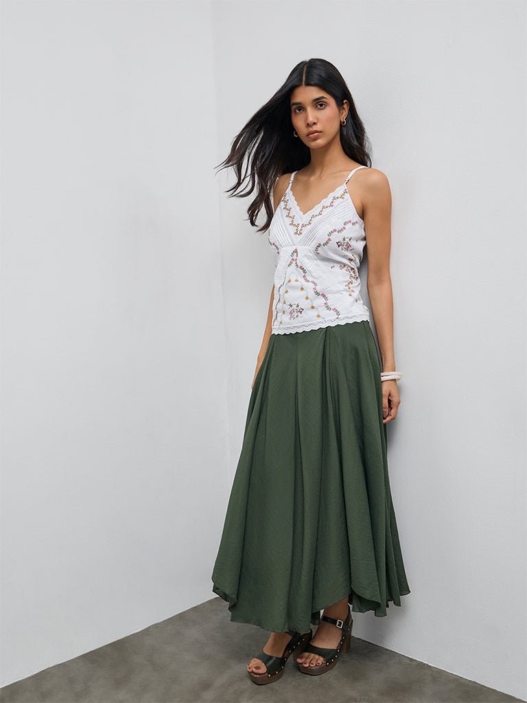 Style effortless layers with this olive maxi skirt from , made from a textured fabric that adds depth to everyday looks. Designed with an elasticated waistband, it offers a flattering fit that pairs seamlessly with blouses and tops alike.