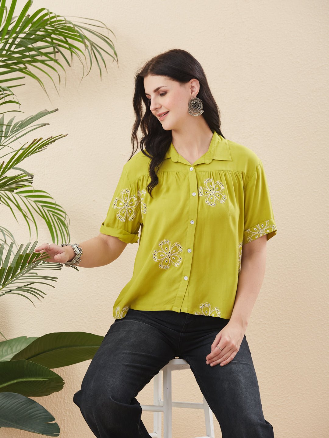Neon Rayon Embroidered Regular-Fit Shirt