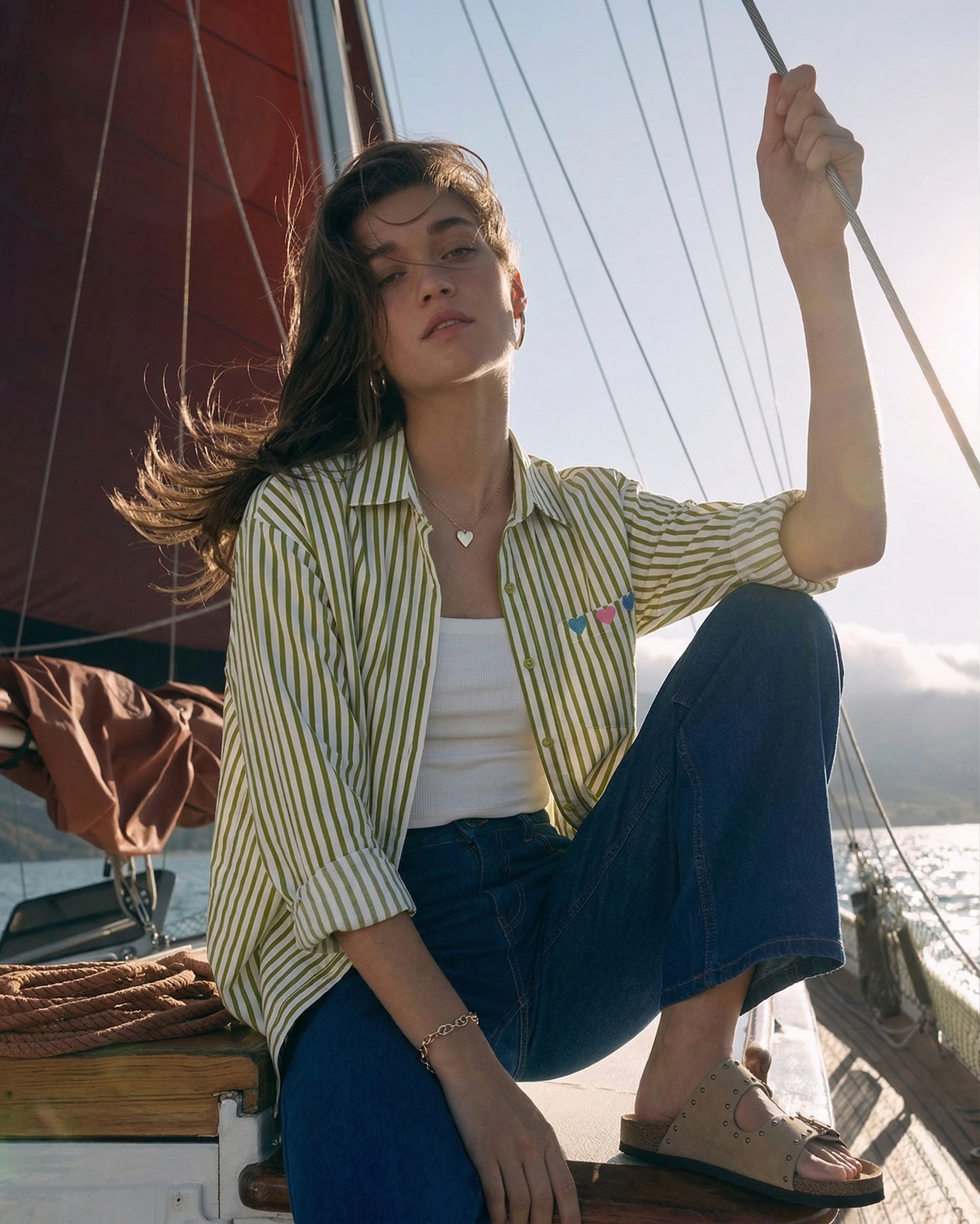 Stay effortlessly stylish with this trendy olive cotton oversized striped shirt, designed for all-day comfort and a relaxed look. Made from soft cotton fabric, it keeps you breathable while the loose fit offers an easy, flattering style. Perfect for casual outings, daily wear, and travel.