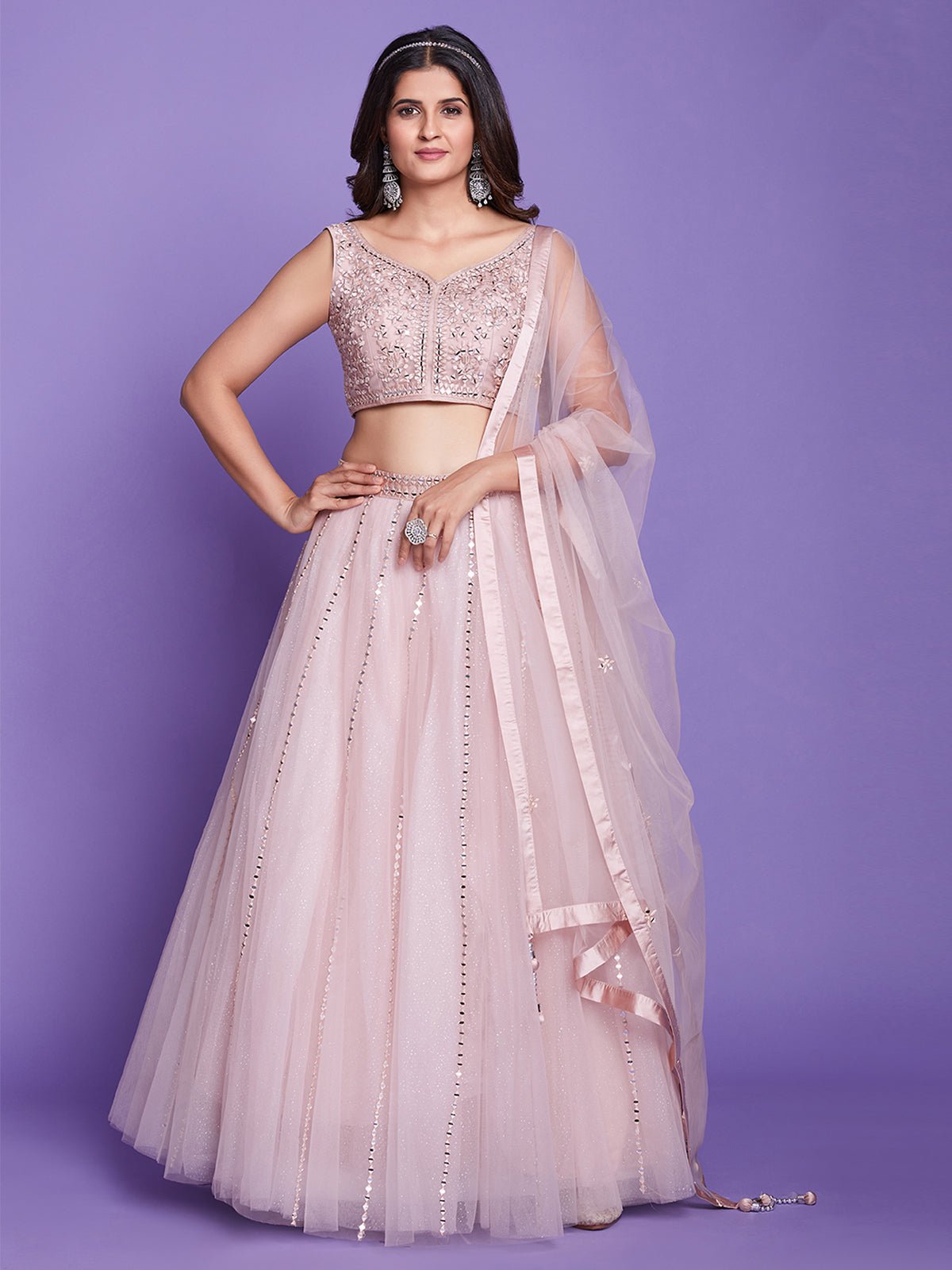 Be the first to review “Peach Net Stitched Lehenga Choli Ready To Wear Festive Outfit” Cancel reply