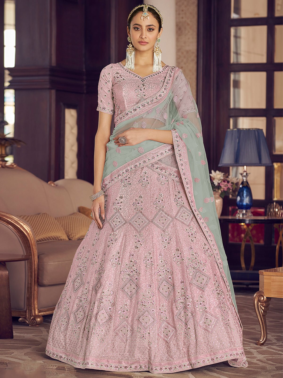 Home Lehenga set Pink Embroidered Semi-Stitched Lehenga Choli Elegant Party Style