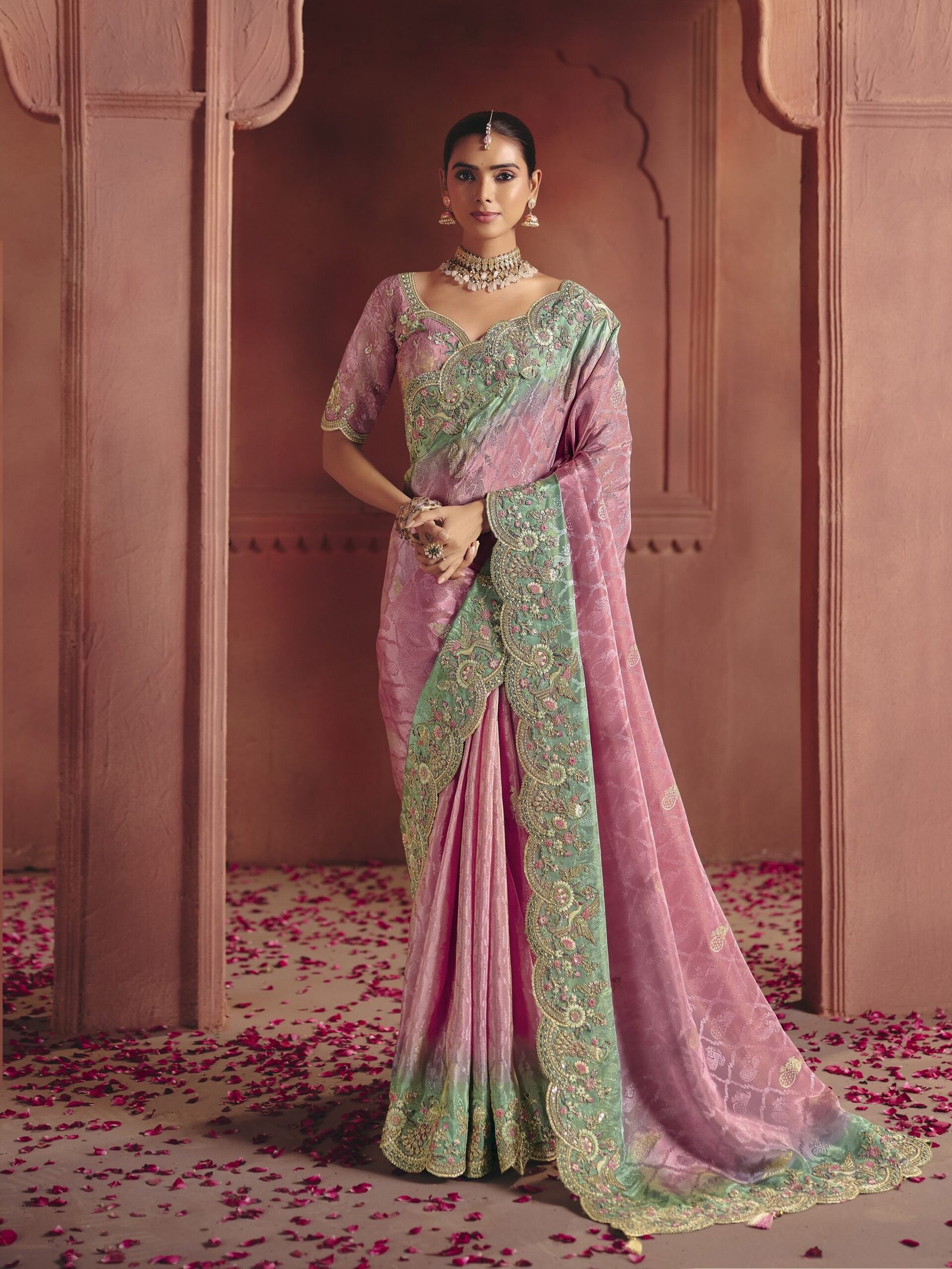 Pink Paradise Embellished Shimmer Tissue Silk Saree
