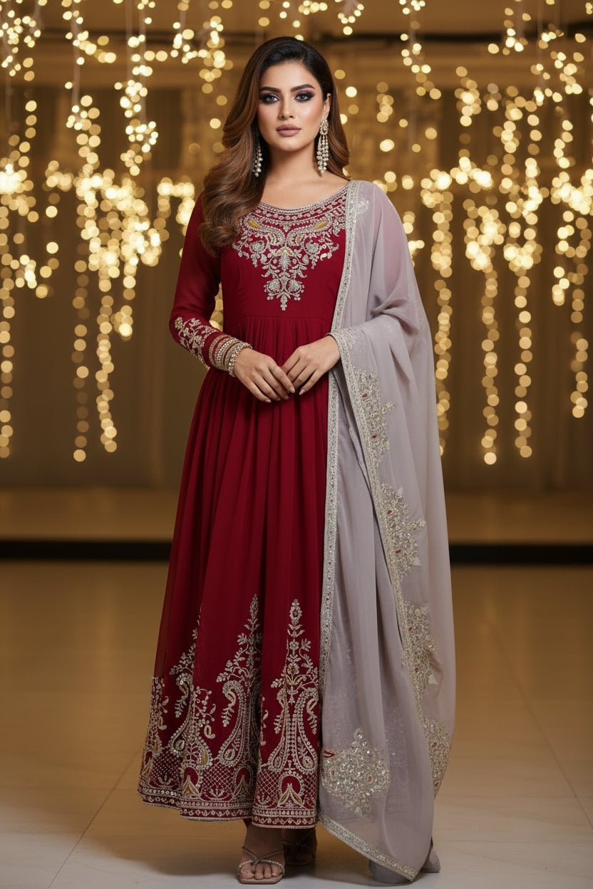 Walking In Pride Georgette Gown Set allows you to express your timeless beauty. It is noted for its elegant and sophisticated appearance, which is achieved using the finest fancy georgette fabric along with multi thread embroidery work . Its easy-to-wear design makes it appropriate for any occasion. This traditional and elegant ornament will elevate your look.