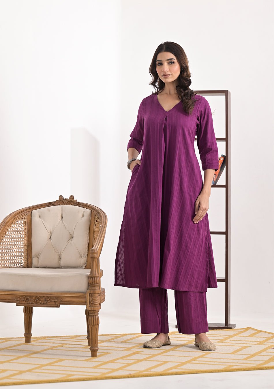 Home Co-ord set Purple Cotton Dobby Co Ord SetElegant Ethnic Outfit
