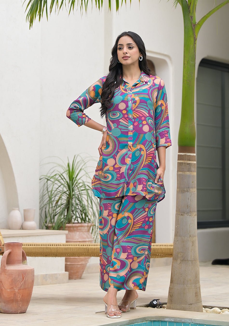Purple Multi Digital Print Co Ord SetVibrant Fashion Wear