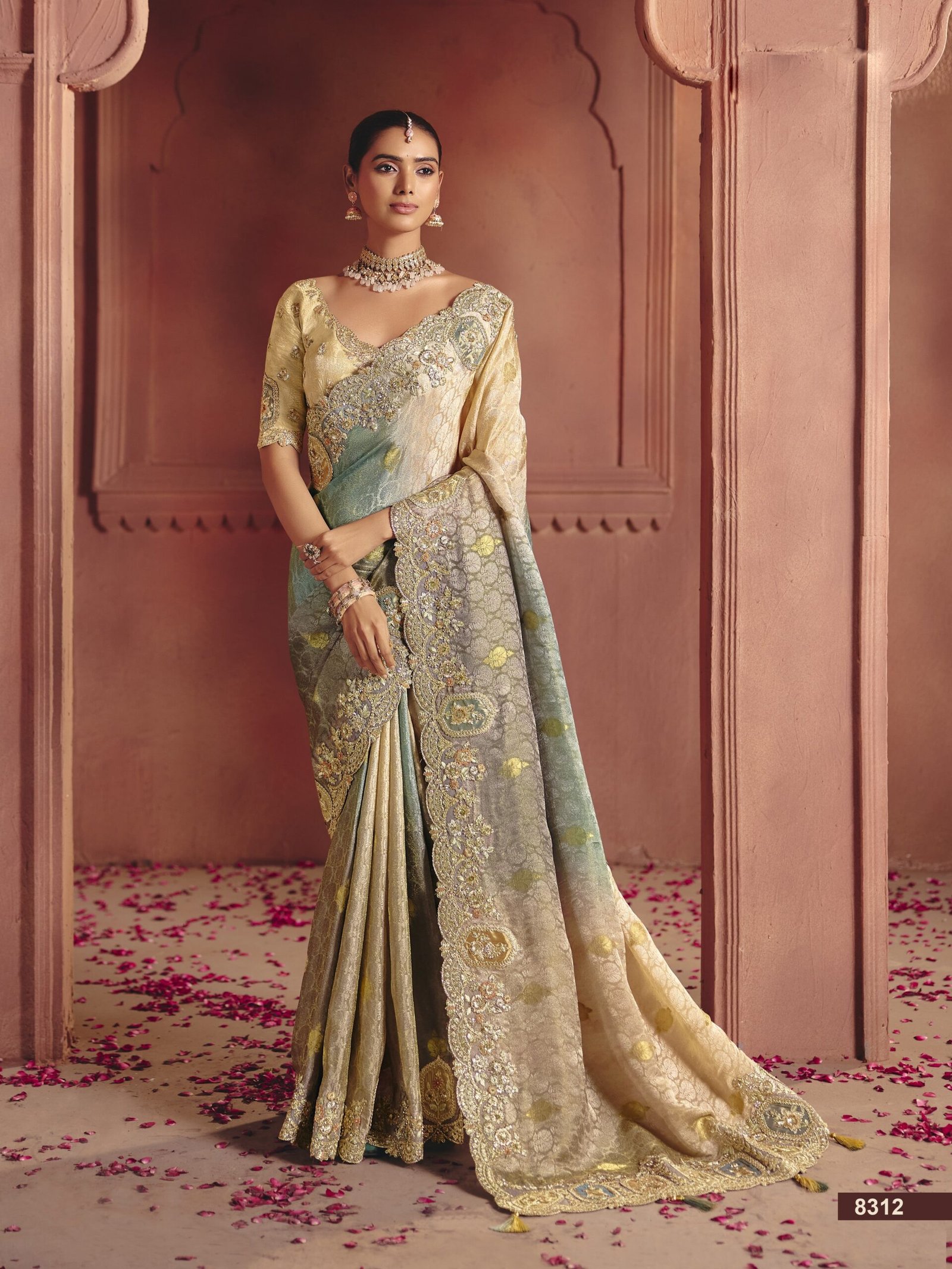 Home Saree Regal Ombre Embellished Shimmer Tissue Silk Saree