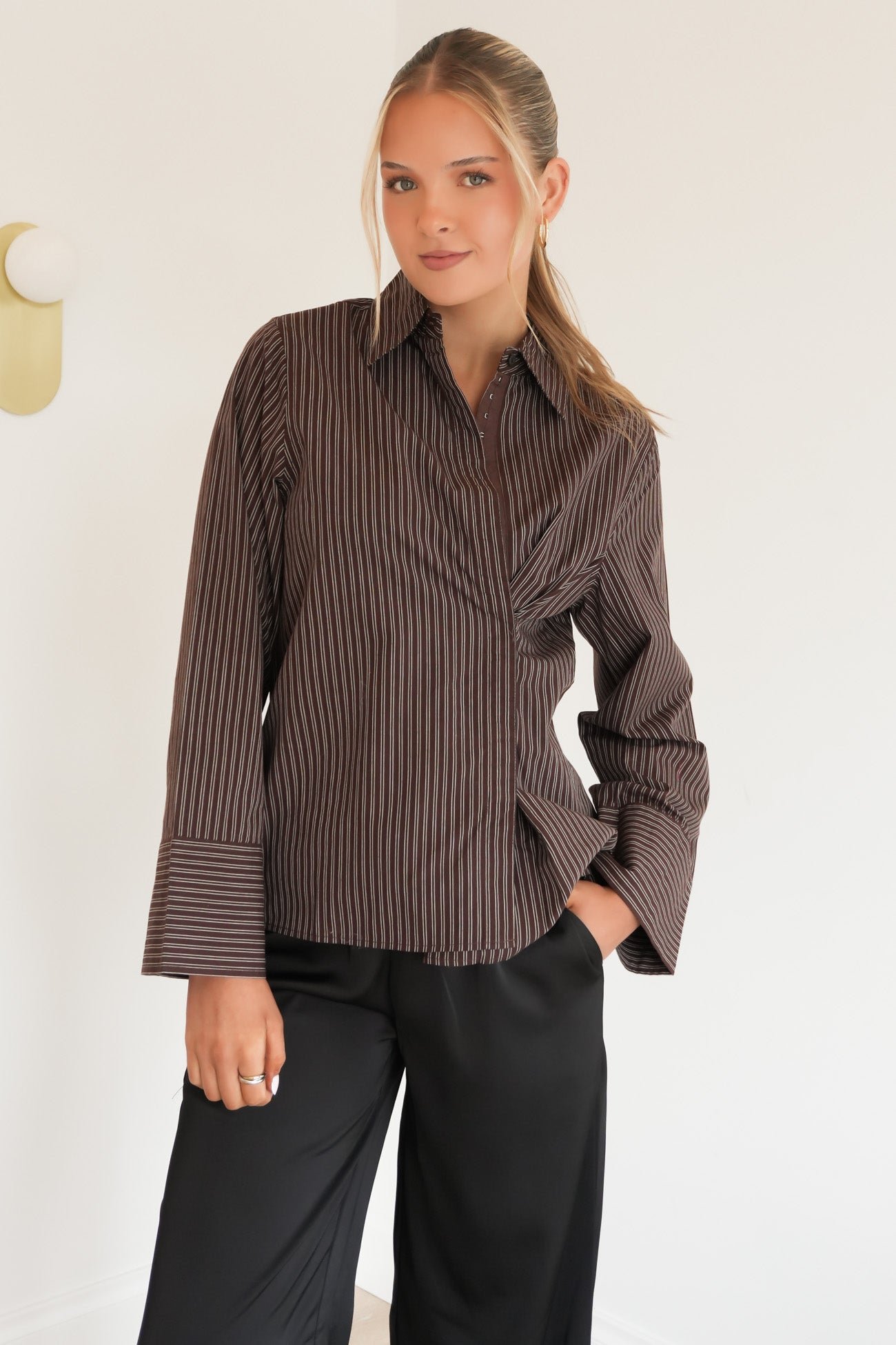 Shirt is your favourite oversized shape, just upgraded. It?s relaxed and roomy, but if you wanna feel snatched, the adjustable hook-and-eye tab lets you cinch that waist and switch up the vibe. Style it back with denim and call it a day!