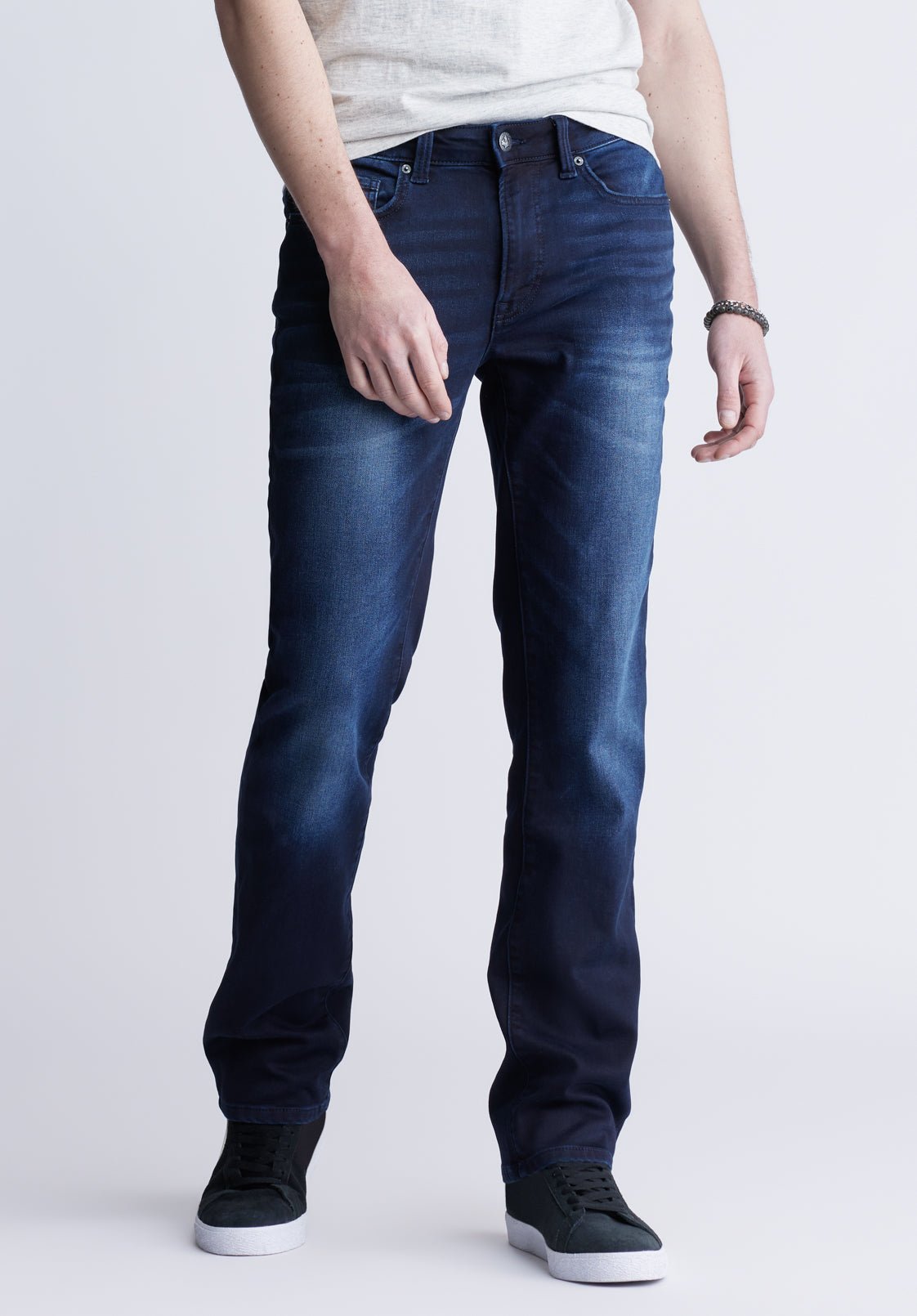 Straight Fit Men Five-Pocket Freedom Flex Jeans, Dark and Sanded