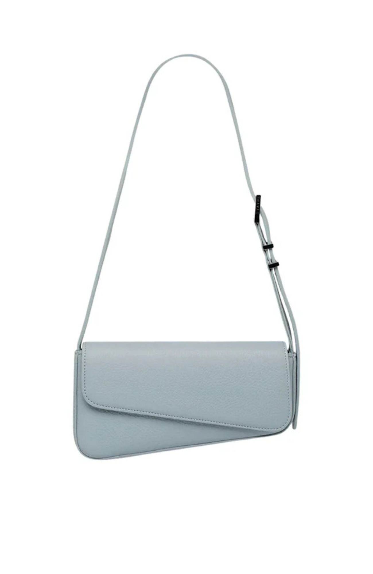 Details;- Semi-structured, soft rectangular shape- Statement wrap handle- Top flap closure with magnetic clasp- One large inner compartment, with open pouch- Measurements: 12cm x 30cm x 11cm
