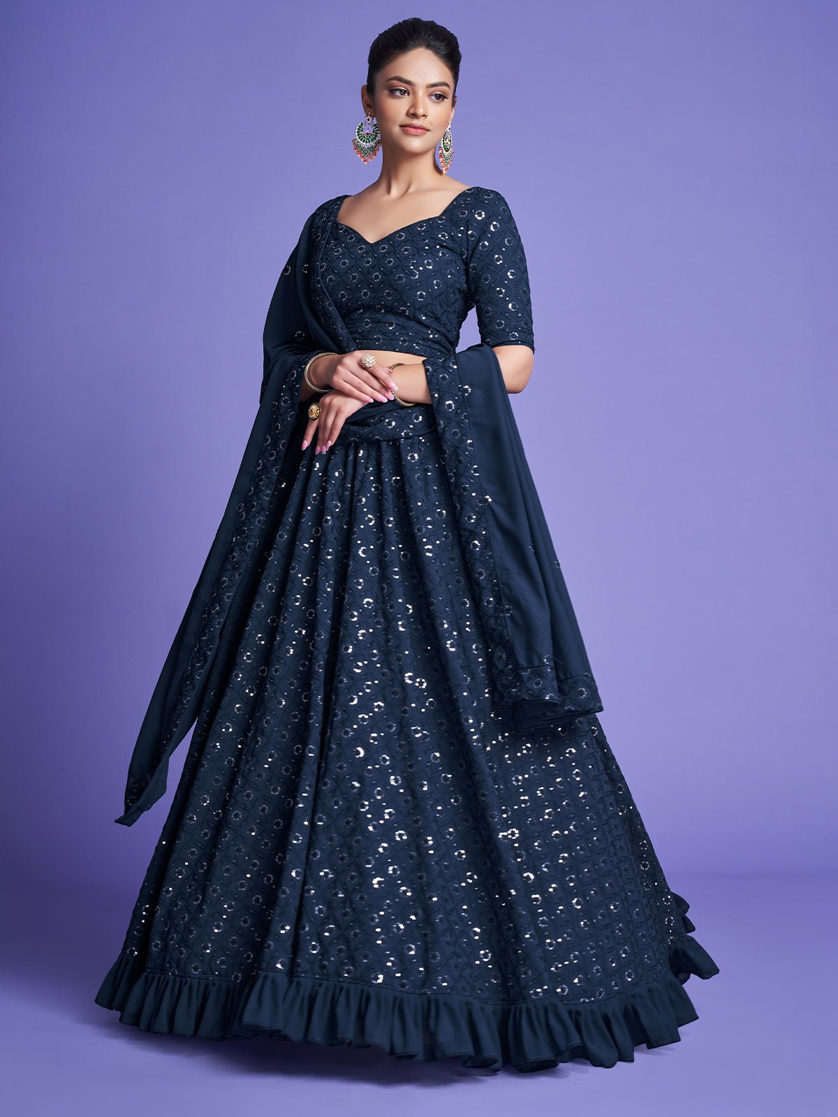 Home Lehenga set Teal Georgette Embroidered Semi-Stitched Lehenga Choli Festive Ethnic Style