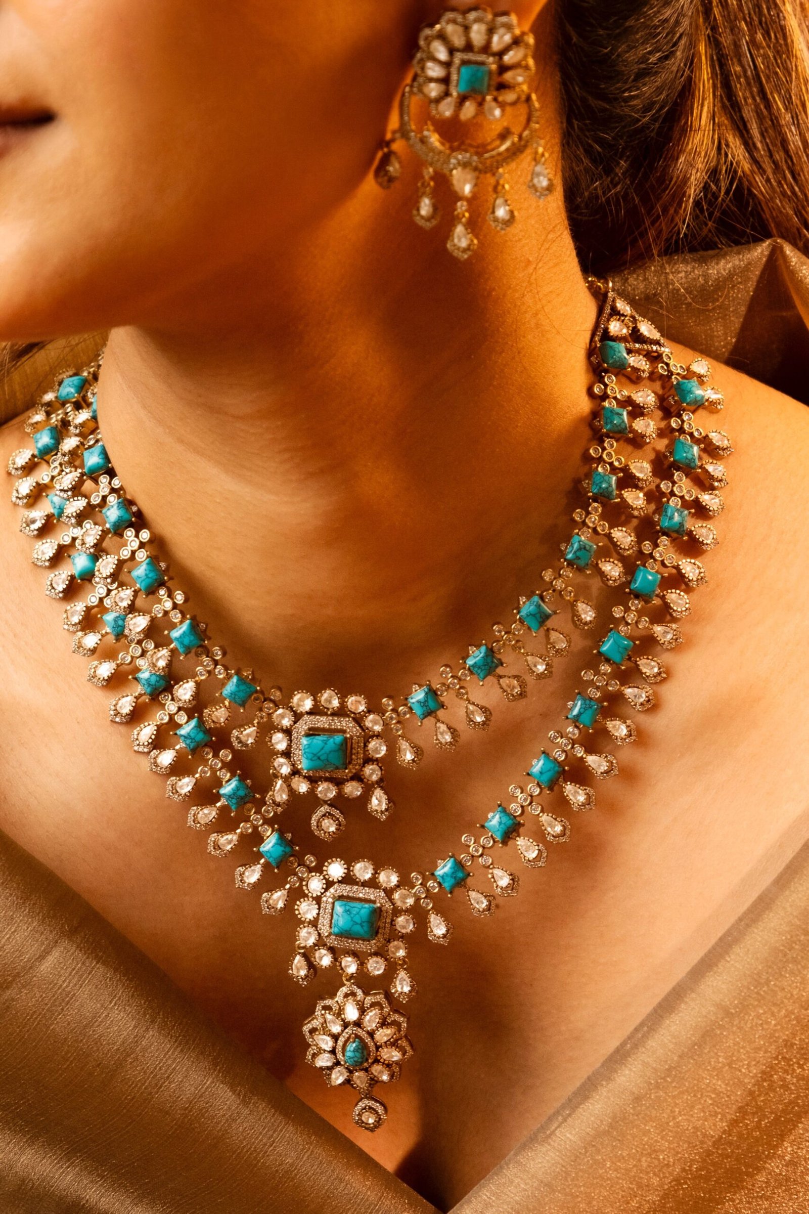 Turquoise Stone Necklace Set|Traditional Statement Jewelry