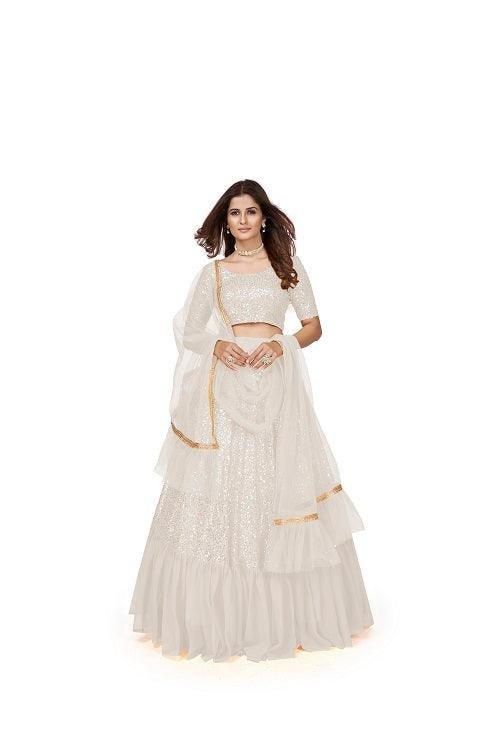 White Georgette Designer Semi-Stitched Lehenga Choli Elegant Festive Wear