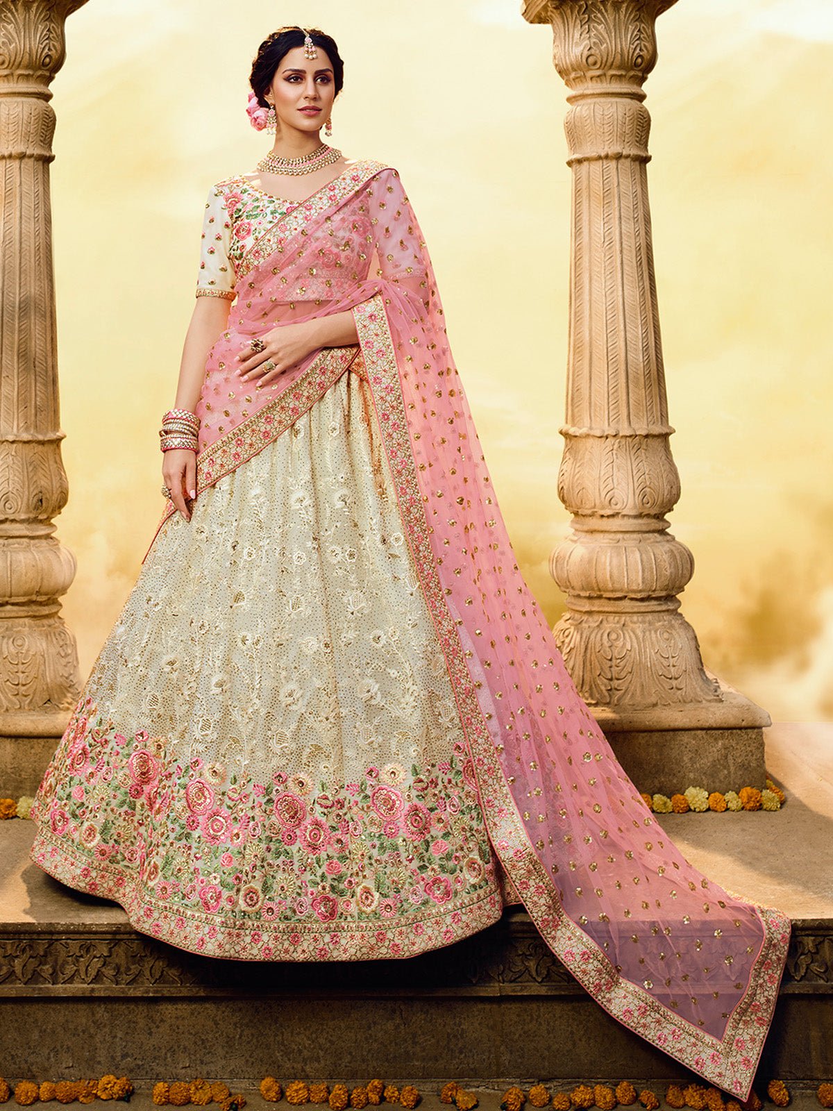 beige ivory lehenga set