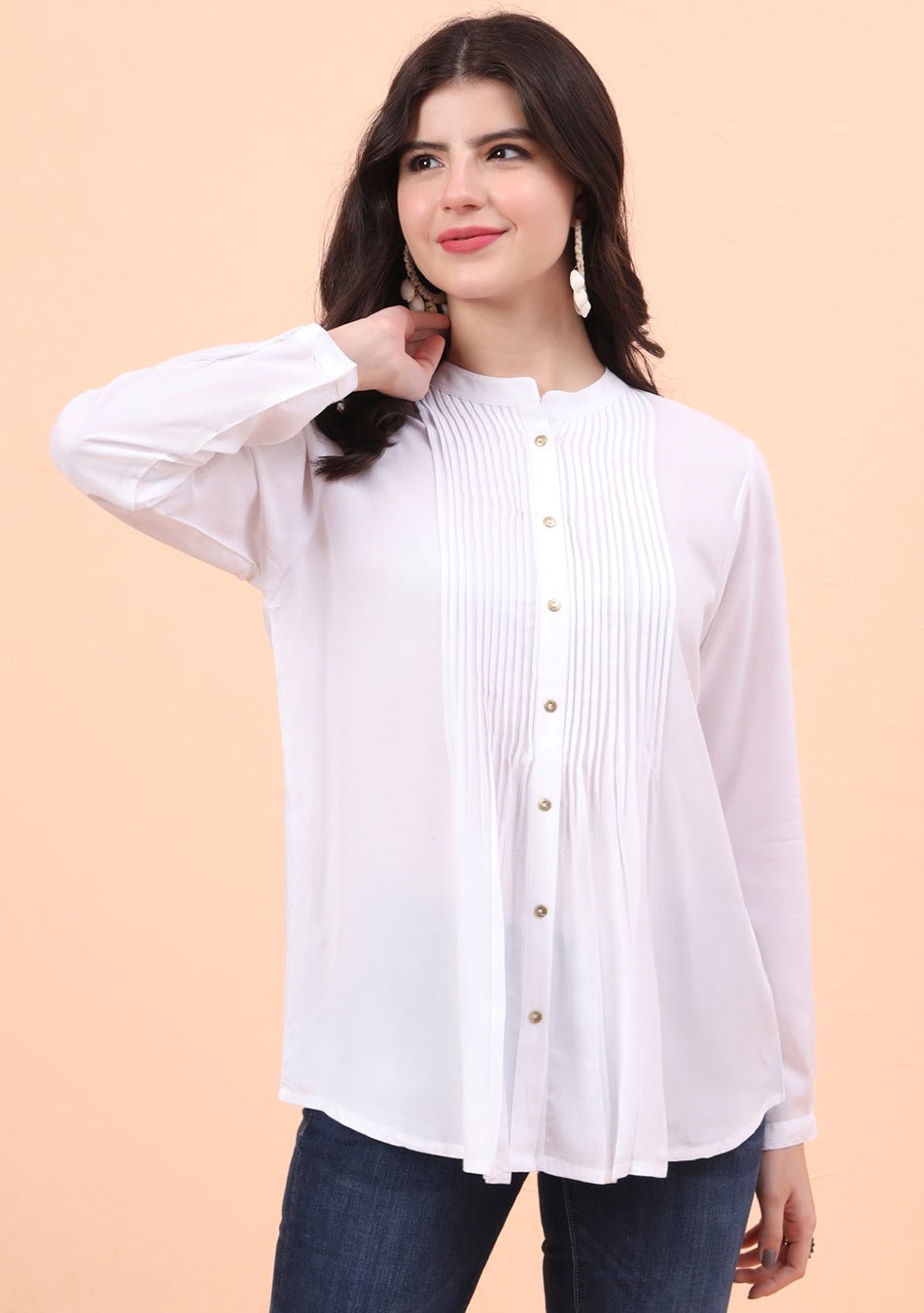 The Solid Pintex White Top is a sophisticated wardrobe staple featuring intricate pintex detailing on the front. Crafted from Rayon fabric, its rich dark blue hue adds elegance, while the structured yet comfortable fit makes it perfect for both casual and formal looks.